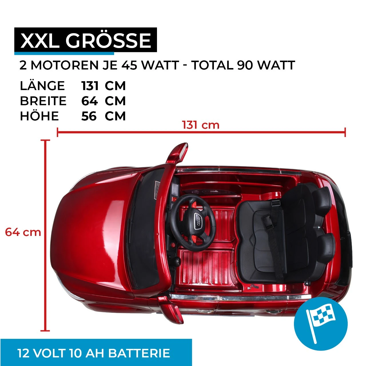 Motor: 2 Motoren 12V 45Watt (Total 90Watt)