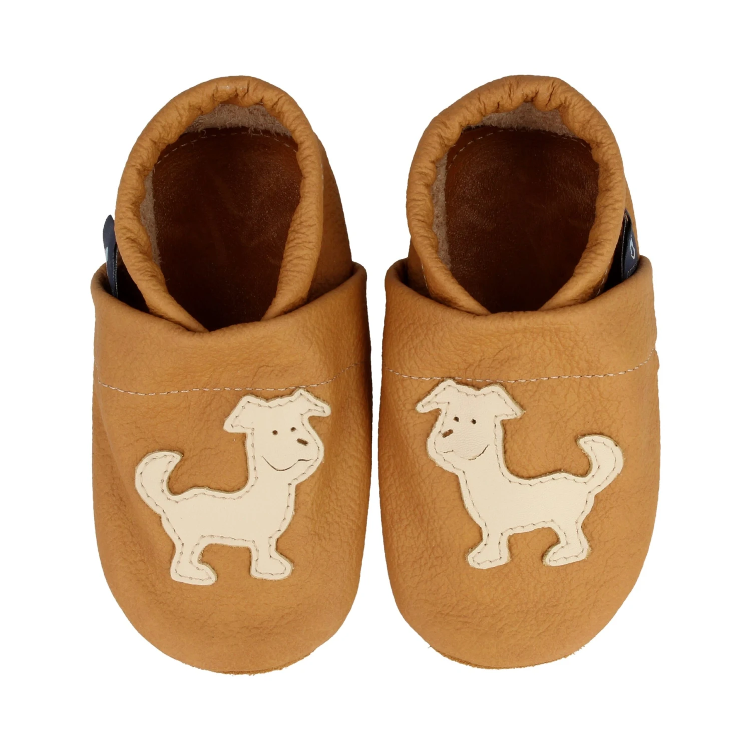 Hausschuhe / Lederpuschen Mit Hund In Caramel / Beige
