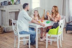 Kinder lieben das weiche, formstabile Material des Junior Boosters. Da sie auch auf Erwachsenenstühlen und nicht auf Hochstühlen sitzen, fühlen sie sich als vollwertige Familienmitglieder und sind stolz, fast auf Augenhöhe mit den „Großen“ zu sitzen. So macht den Kindern das Essen Spaß!