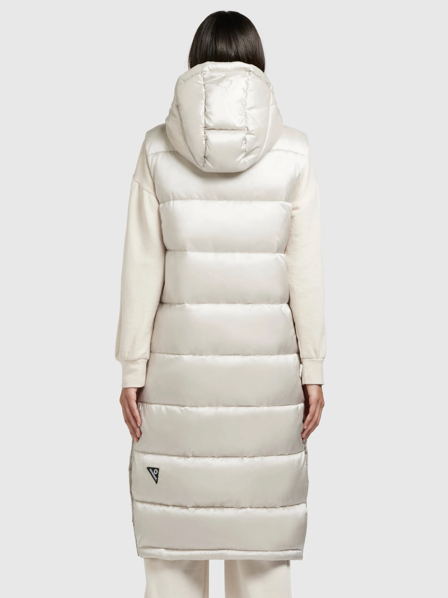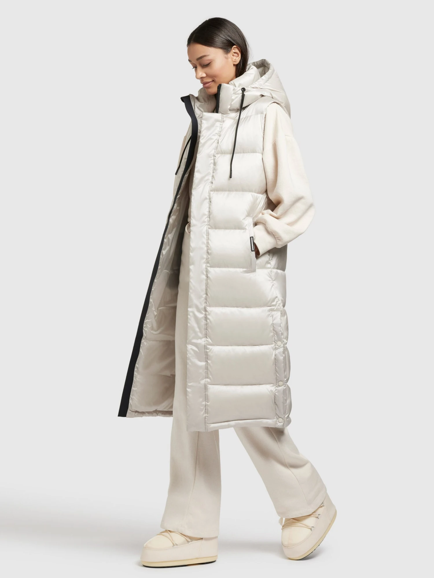 Mit der glänzenden khujo Weste TOURIN SATIN setzt du ein modisches Statement, dass für echte Hingucker sorgt. Diese Steppweste hat einen extra langen Schnitt und ist aus einem wetterfesten Material gefertigt. Die warm wattierte Kapuze mit Kordelzug lässt sich abnehmen und die seitlichen Schlitze im Saum können mit Druckknöpfen geschlossen werden. Eine Kombination aus Zwei-Wege-Reißverschluss und Magnetknopfleiste, Taschenbeutel aus Fleece sowie Reißverschlusstaschen runden das Design gelungen ab.