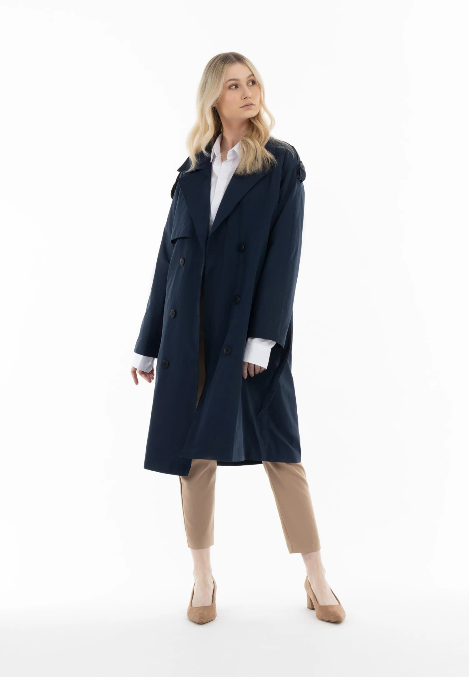 Gewisse Basics gehören in jede Garderobe. Der Trechcoat von DreiMaster Klassik gehört in jedem Fall dazu. Gefertigt aus einem weichen, angerauten Baumwollmix zeigt er die typische doppelreihige Knopfleiste, einen Schulterkoller, Epauletten sowie einen akzentuierenden Taillengürtel. Die zwei seitlichen Eingrifftaschen sind ein Muss, ebenso der Schlitz auf der Rückseite. Geht offen, wie gschlossen – von Office bis Oper.