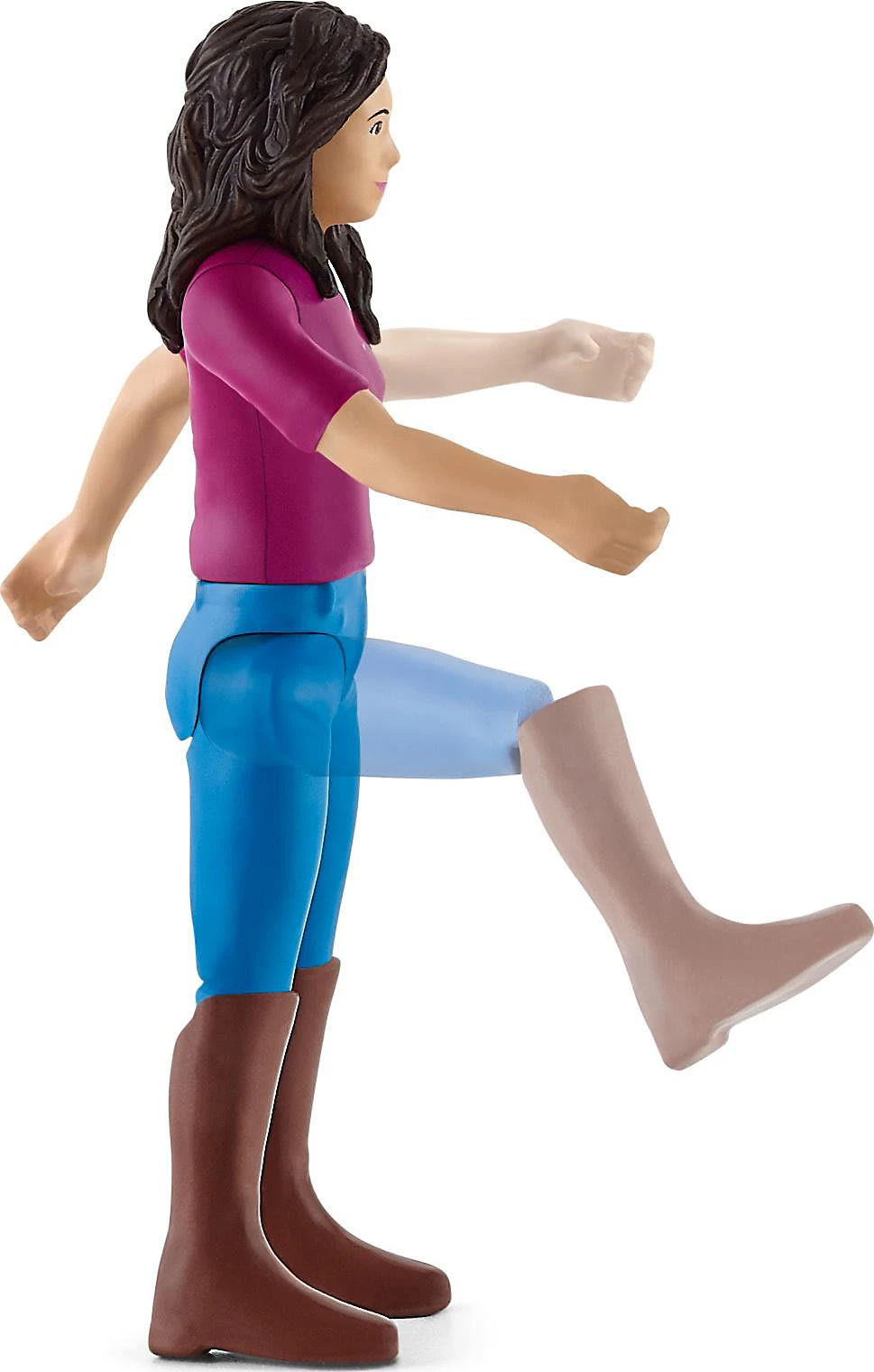 Der Horse Club Lakeside Pferdehof von Schleich® Horse Club beherbergt Hannah und ihre Eltern und bietet vielfältige Spielfunktionen und Accessoires. In der Küche des Wohnhauses wird am Esstisch vom Apfelkuchen aus dem Backofen genascht oder ein Snack aus dem Kühlschrank stibitzt. Teller, Tassen, Topf und Pfanne werden am Spülschrank abgewaschen. Die Mädchenfigur Hannah ist genau wie ihre Eltern Caroline und Oliver Kramer vollbeweglich und kann sitzen, reiten und stehen. Zusammen kümmern sie sich um Quarter-Horse Cayenne und Hannoveraner-Hengst Jupiter. Sie werden mit Striegel und Kardätsche geputzt und bekommen für das Training den Sattel aufgelegt.