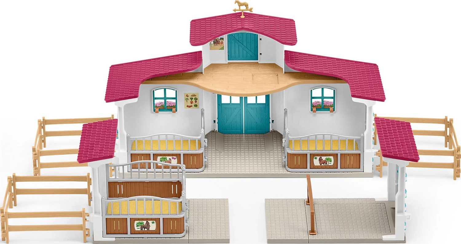 Der neue Schleich Horse Club 42567 Reiterhof ist das Herzstück deiner Horse-Club-Sammlung! Er begeistert mit jeder Menge neuer Funktionen. Ein neuer, offener Gestaltungsraum bietet viel Platz zum Spielen. Das Design ist jetzt modular, sodass sich das Spielset auf unterschiedlichste Weisen aufbauen lässt. Mehr als 50 Zubehörteile sorgen für grenzenlosen Spielspaß! Der Reiterhof lässt die Herzen von Horse-Club-Fans höherschlagen!